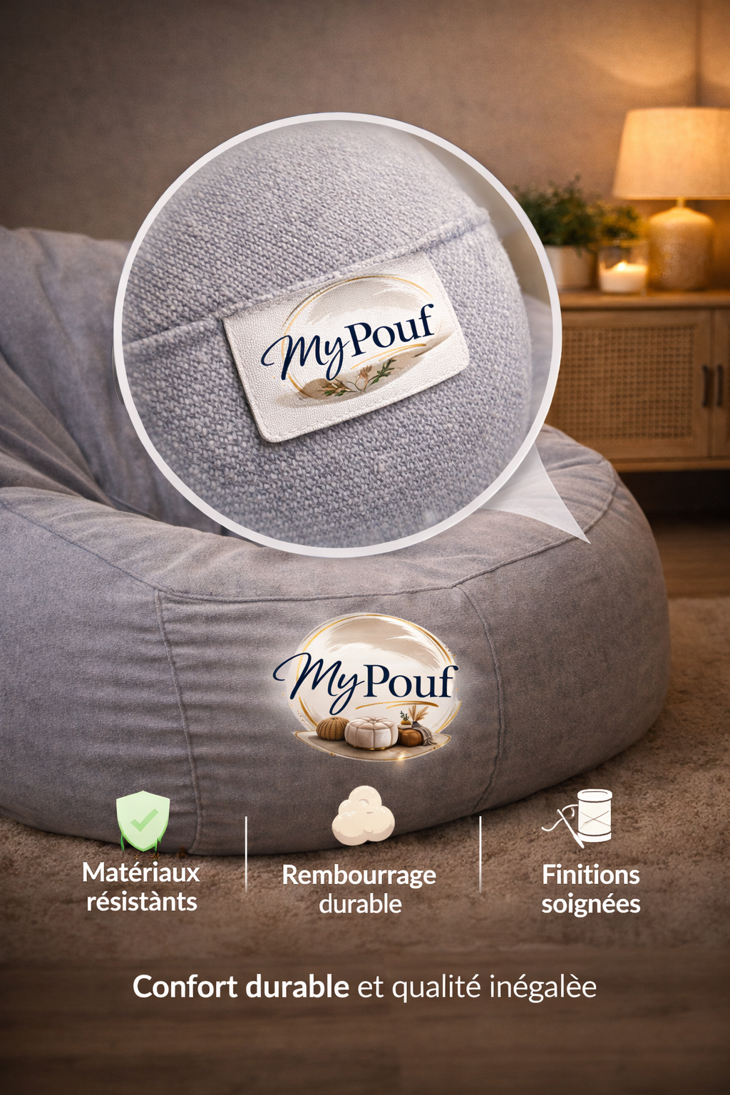 Choisir MyPouf, c’est faire le choix d’un produit fiable, conçu pour durer et vous accompagner dans vos moments de détente pendant longtemps. Parce que le confort ne devrait jamais être éphémère, nous avons imaginé des poufs qui traversent le temps tout en restant aussi accueillants qu’au premier instant.